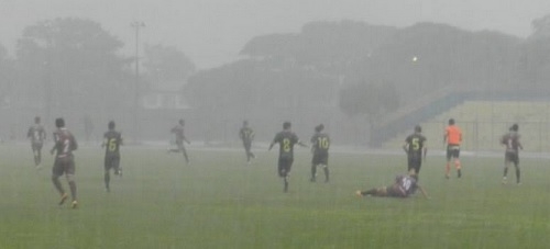 Apesar do mau tempo, 328 pessoas foram domingo à tarde ver o Sport enfrentar o Cascavel pela Terceirona do Paranaense. Choveu muito durante a partida e teve até uns “granizinhos”. No final, 4 a 0 para os visitantes, na primeira derrota em casa do Leão do Vale na temporada. Pra resumir o fim de semana: no futsal, Campo Mourão matou a cobra, mas no futebol levamos um "baite de um bote"...