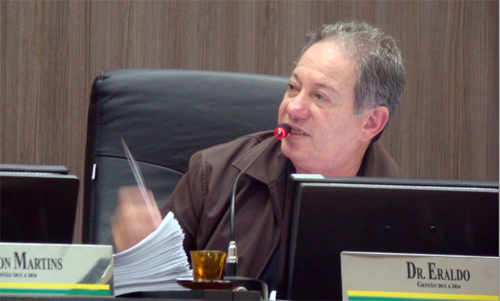 Eraldo Teodoro (PMDB), vereador de Campo Mourão, sobre proposta para que a Câmara direcione dinheiro de suas obras para pagar projetos de melhorias em escolas; durante sessão ordinária, nesta segunda-feira.