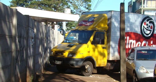 “Se Chips é impossível comer um só, nessa calçada aí é impossível passar um só pedestre que seja. E nem é só por culpa do caminhão. Um trecho da rua Araruna foi transformado em estacionamento diagonal sobre a calçada e enquanto as autoridades dada veem (ou fingem que não veem), os motoristas vão se aproveitando.