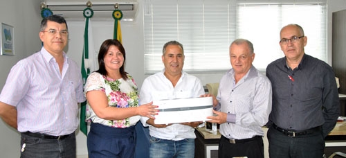 A entrega aconteceu no meio da sessão ordinária e teve a presença da prefeita Regina Dubay.