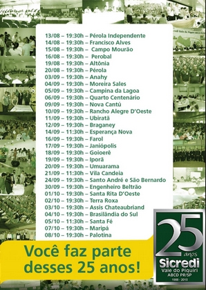 Os eventos também comemoram os 25 anos de criação da cooperativa de crédito.