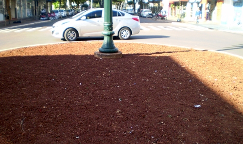 “Foto tirada sexta-feira, na av. Manoel Mendes de Camargo, esquina com a rua São Paulo, mostra o canteiro de flores, sem flores há uns 30 dias. As flores novas devem ser plantadas no mesmo dia em que forem arrancadas as flores velhas; no máxima em três dias. Os canteiros de flores devem ser bem zelados. Fraterno Maria Nunes