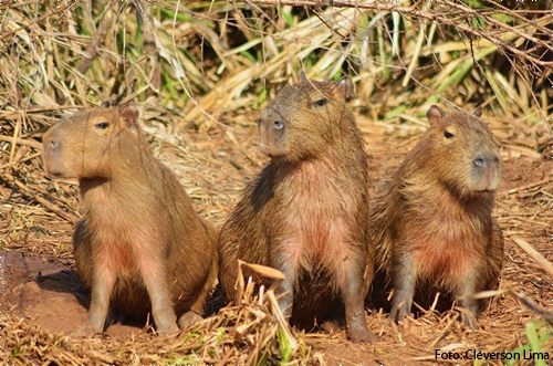 Capivaras curtem o sábado de sol no Parque do Lago.