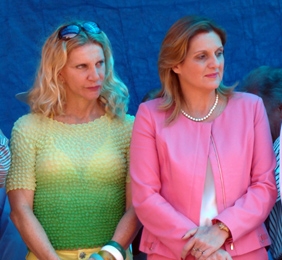 A vereadora Nelita Piacentini apareceu com uma roupa verde e amarela no desfile de 7 de Setembro em Campo Mourão, neste sábado. Já a prefeita Regina Dubay optou por um modelito rosa. Aí, quando uma ficou ao lado da outra deu nisso: verde e rosa. Portanto, que fique claro: nem todo verde e rosa na avenida é a Mangueira...
