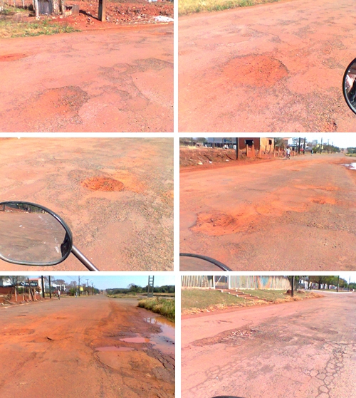 “Essa é a situação do Parque Industrial I, saída para Farol, uma falta de respeito com quem quer evitar o perigo da rodovia pra ir por aí, essa buraqueira toda. Corremos o risco de cair num buraco desses, ou bater em outro veículo tentando desviar pra não entortar, roda e aro de bicicletas, motos e carros. Eu fico indignada”. Dalila.