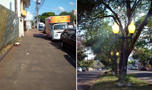 À esquerda, faltam árvores. É quase uma quadra inteira “pelada”. Isso em plena rua Roberto Brzezinski, entre as avenidas Capitão Índio Bandeira e Manoel Mendes de Camargo, ou seja, centrão da cidade.