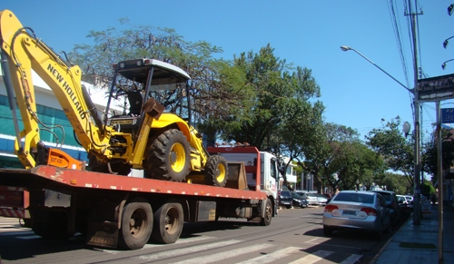 Não bastasse o trânsito confuso da área central, em pleno horário de pico um caminhão atravessa, numa boa, a av. Capitão Índio Bandeira, levando uma retroescavadeira na carroceria. O clic foi feito nesta terça-feira. Eita nóis!...