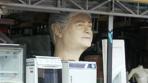 Virou destaque na mídia estadual a cabeça do senador Roberto Requião que está à venda numa loja de móveis usados de Curitiba.