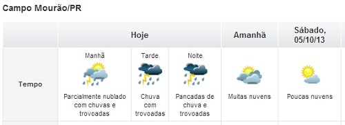 Mudança na previsão do tempo para esta sexta-feira em Campo Mourão.