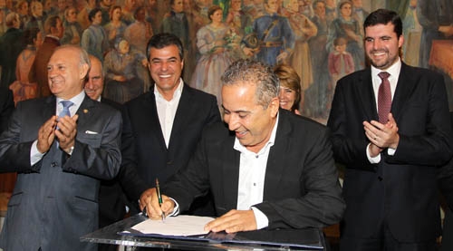 Olha o prefeito Beto Costa aí, todo faceiro, assinando o convênio ao lado do governador.